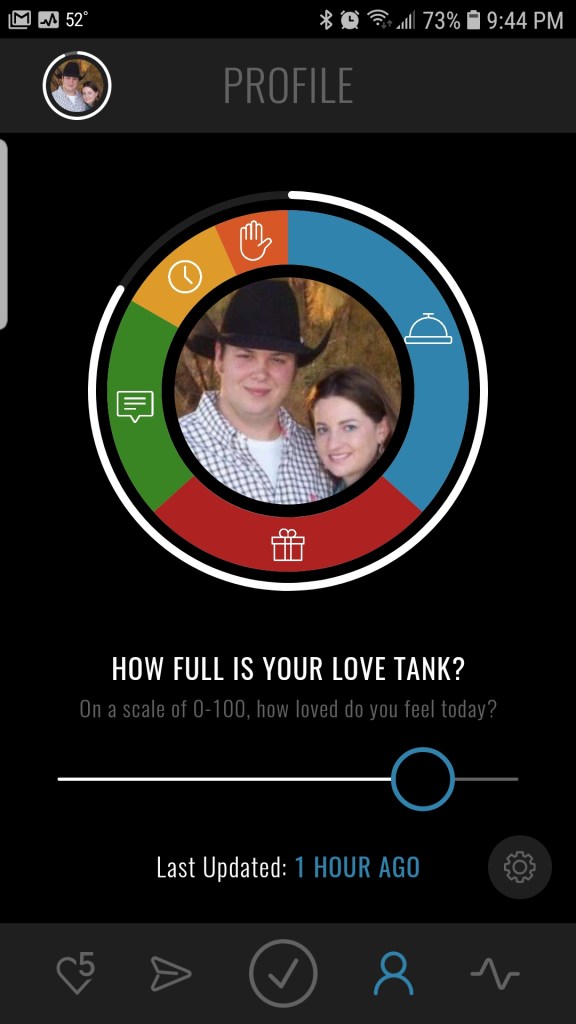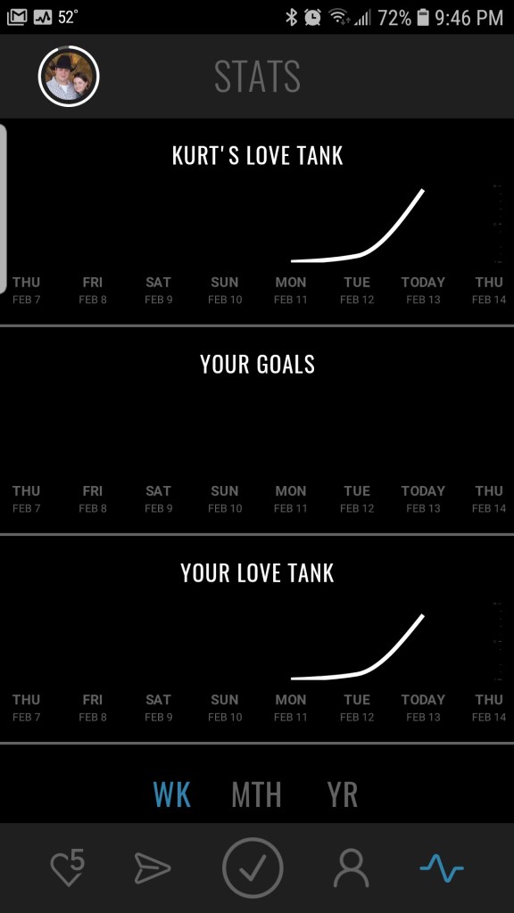 There is are places within the app where you can gauge how loved you feel each day and even set goals to show love to your spouse in creative ways (they help you out with ideas). You can even communicate with your spouse in the app.