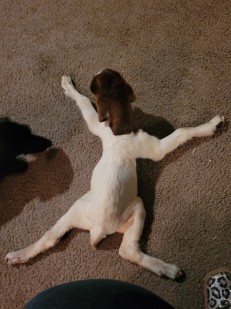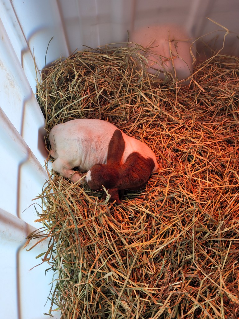 Let me give you a little back story. Buck was born a little over a month ago and was the runt of a set of triplets. He was not able to stand up and his mother really didn’t tend to him. After trying throughout the day, unsuccessfully, to get her to tend to him and get him to stand up, we finally decided to get him inside and get him warmed up and fed. Since that time he has been my little bottle baby. He lived in a small water trough inside our house for about 3 weeks so that I could feed him (forcefully to begin with) and treat a nasty eye infection. Over time he healed and started standing, walking, running, and finally got well enough that we couldn’t even keep him in his little makeshift pen because he would just jump out. So we moved him to a little pen out in the barn with the other goats.