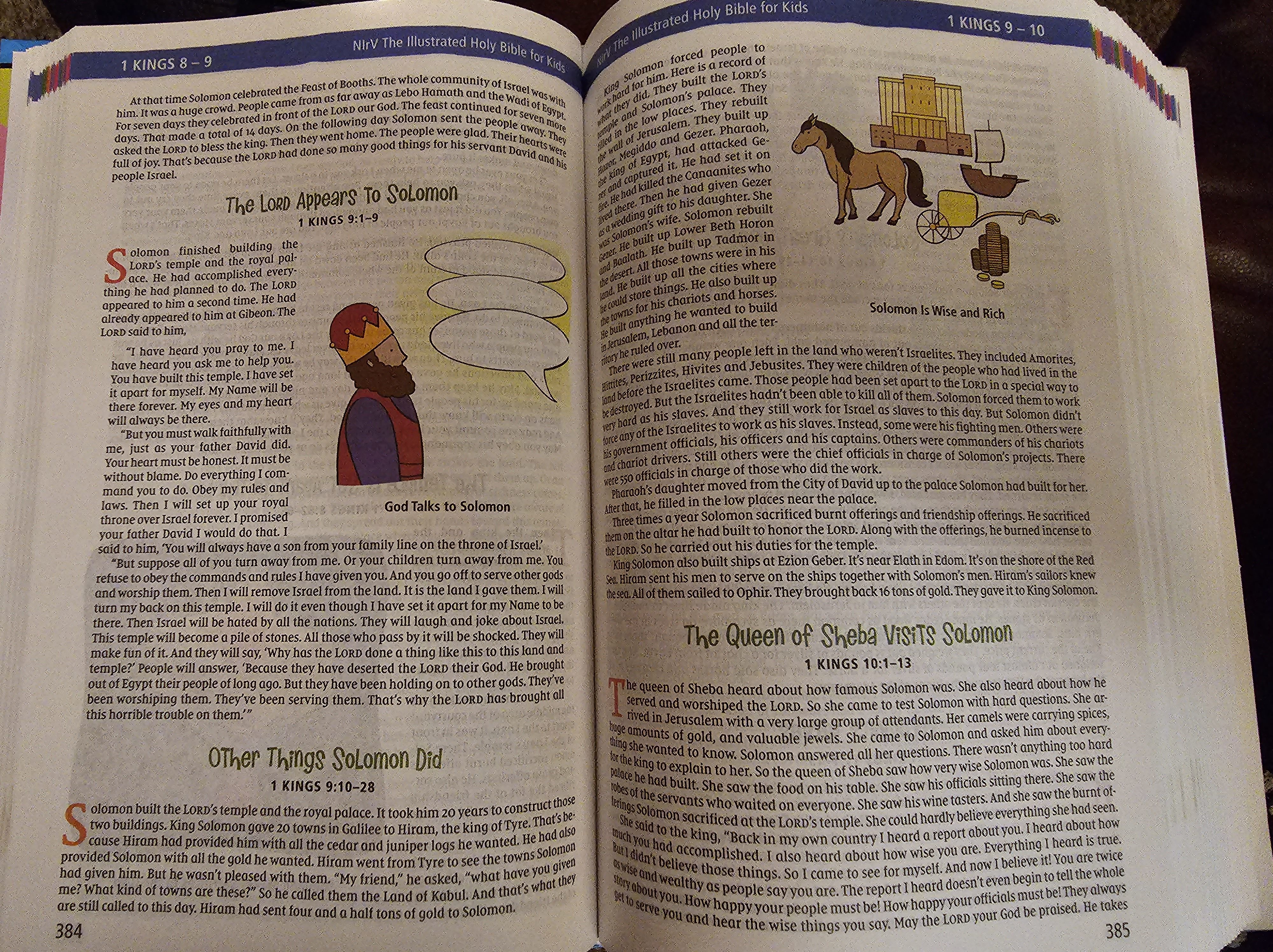 Another good thing about this Bible is that it is written in a single column rather than two columns like a typical adult Bible. That makes it a lot easier for my kids to read. I hope you will look into this Bible for your kids or grandkids. If you would like to see a short clip showing more of this Bible please click here.